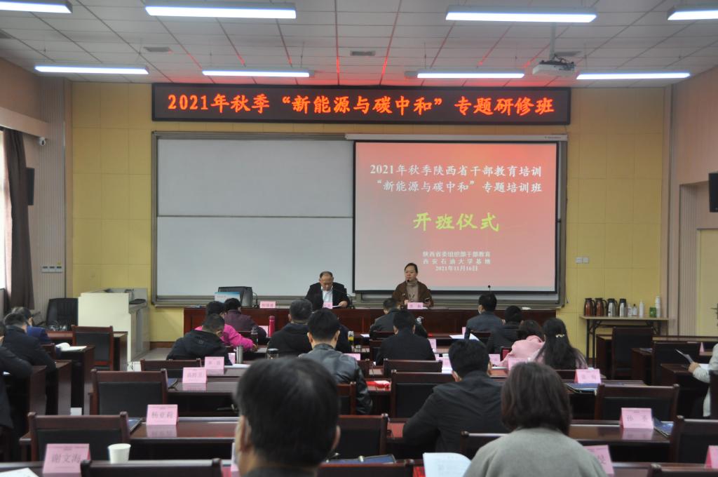 11月16日上午,由省委組織部主辦、我校干訓基地承辦的2021年秋季陜西省干部教育培訓“新能源與碳中和”專題研修班在我校順利開班,來自省直機關單位、縣(市、區)政府的60余名干部參加了開班儀式,繼續教育學院副院長吳民生出席開班儀式并致歡迎辭。