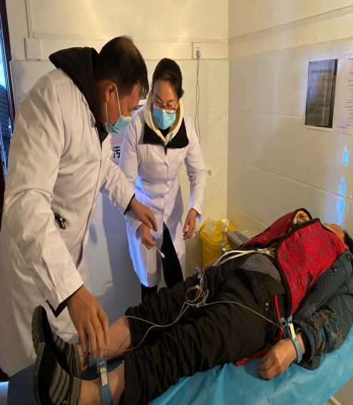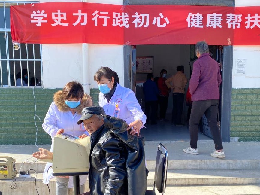 在永壽縣堅固村村衛生室義診活動現場,醫務人員佩戴黨徽,亮明身份,熱情有序地接待前來看病或咨詢的村民,詳細詢問病史,耐心細致地進行各項檢查,并有針對性地提出了科學的防治方案?,F場對村民進行了新冠疫情防控、高血壓、糖尿病、狂犬病等健康知識的宣教,指導村民科學做好新冠疫情個人防控措施,養成正確佩戴口罩、健康生活方式。本次義診活動的項目主要有健康檢查、咨詢和心理健康指導,檢測血壓、血糖、心電圖、B超、中醫診脈等檢查項目。對行動不方便前來的村民,我校醫務人員還主動入戶進行義診,除了進行必要的健康查體和健康宣傳,還給他們送去了必備藥品。此次義診共接診30余人,免費發放治療高血壓、糖尿病、風濕病等疾病的二十余種藥品90余盒、口罩200余個,發放宣傳教育資料100余份。
