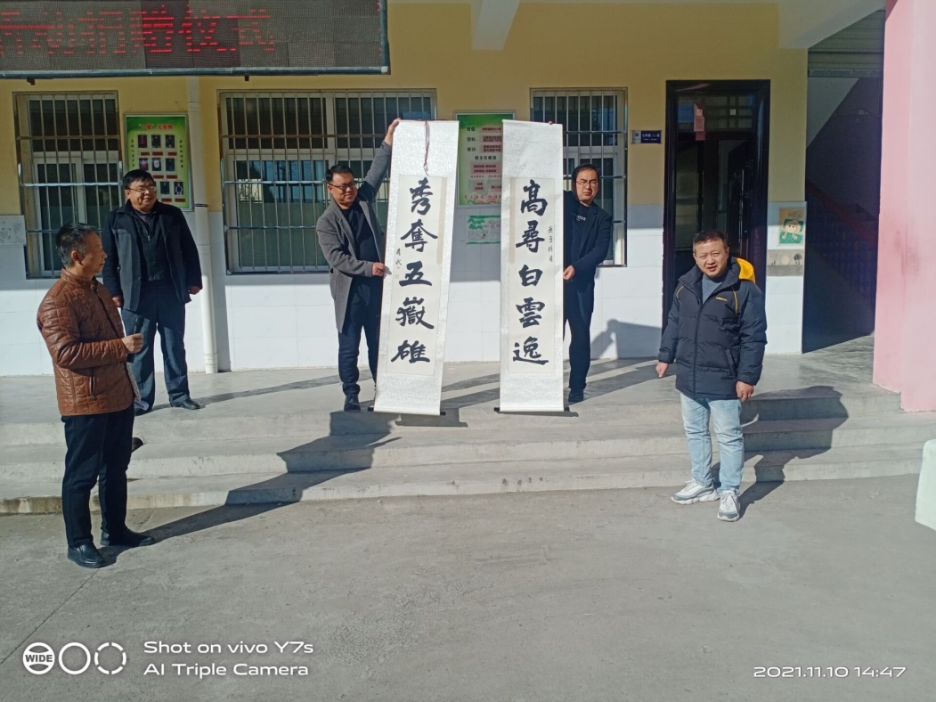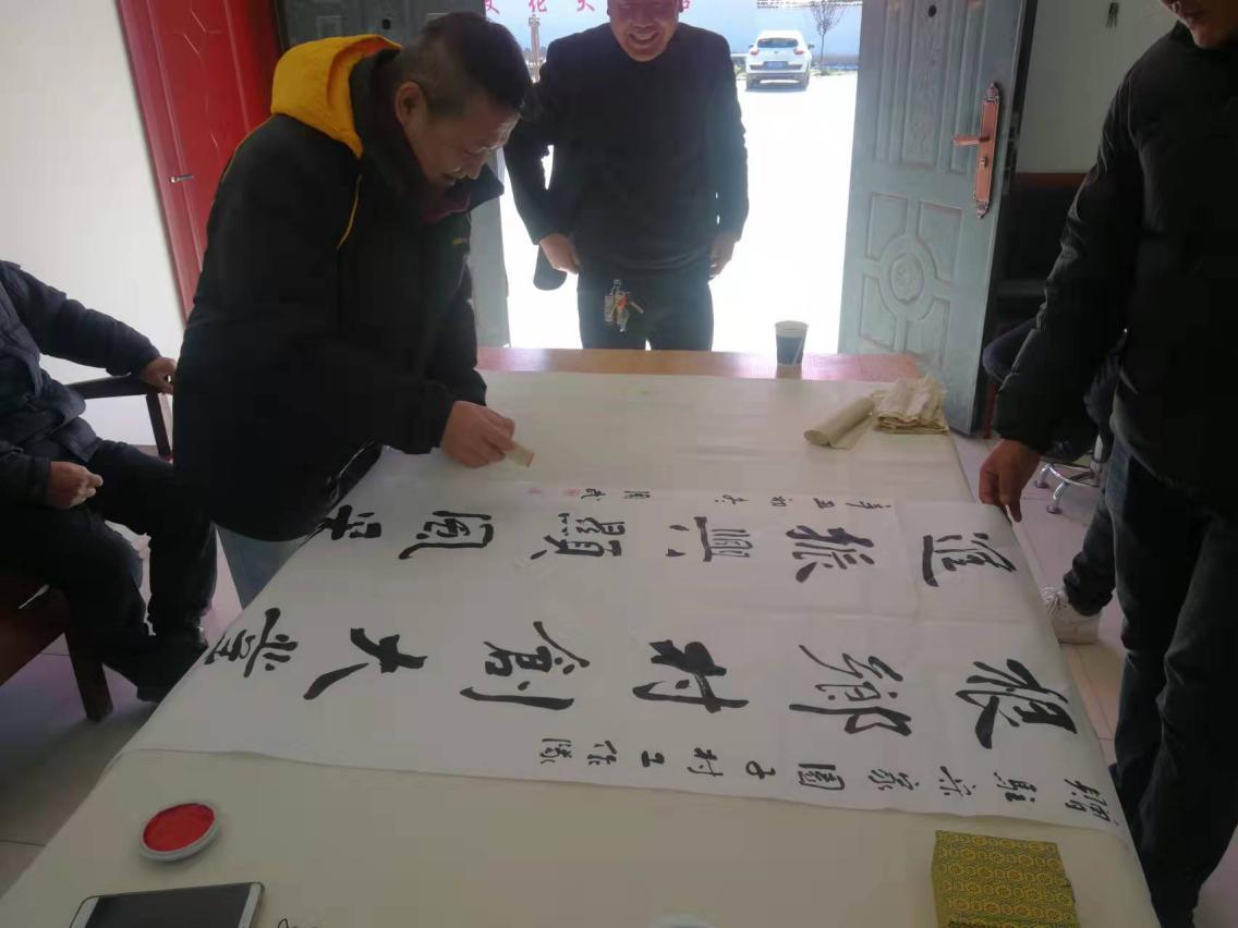 弘揚優秀傳統文化是鄉村振興的必然要求,實施鄉村振興戰略,就要深入到田間地頭,傳播農耕文化蘊含的優秀思想觀念、人文精神、道德規范,提高人民群眾的道德水準和文明程度,大力倡導社會主義核心價值觀,激發勞動人民的創業熱情和創新活力,筑牢人民共同團結奮進的思想基礎。料峭冬日,暖意融融,11月10日,西安石油大學工會袁玎主席、劉陜軍副主席帶領工會同志先后前往永壽縣馬坊鎮宋家園子村和馬坊中學開展書法藝術進農家和書法藝術進校園活動。
