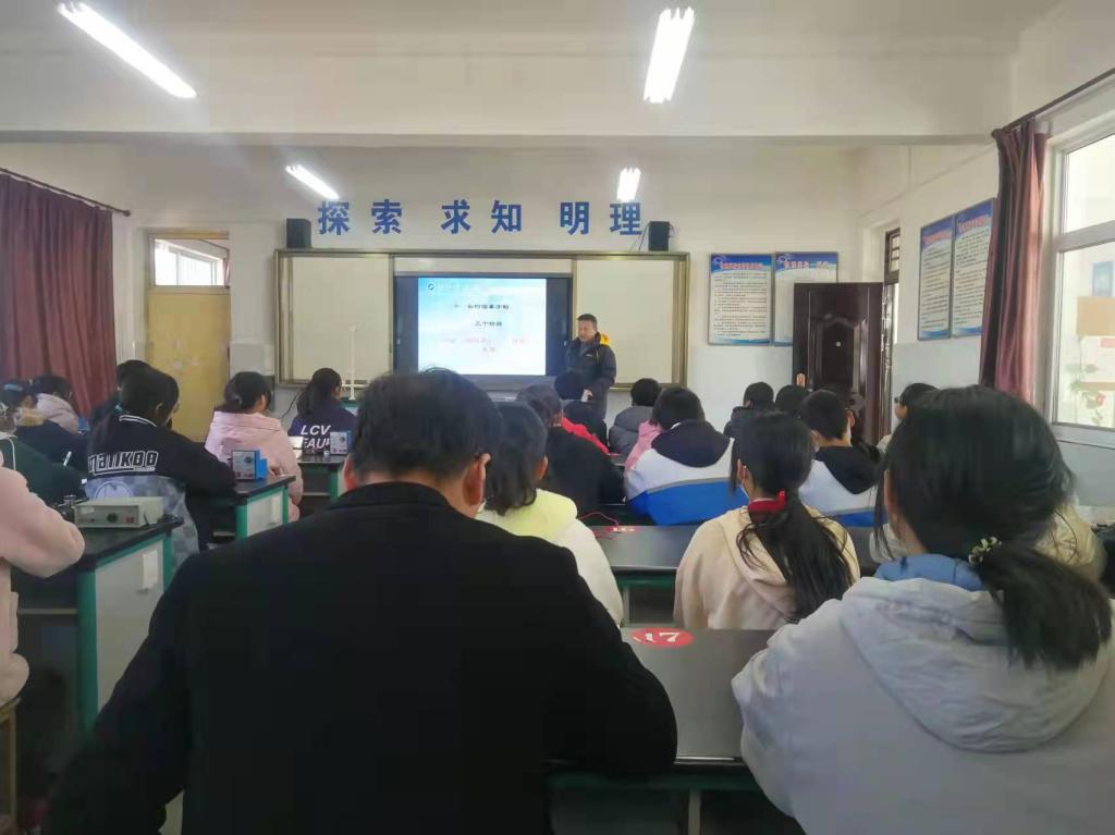 當天下午,在永壽縣青少年校外活動中心主任黃健身陪同下,周老師又來到永壽馬坊中學開展書法進校園活動,為廣大師生上了一堂生動有趣的書法知識欣賞課。在隨后進行的捐贈儀式上,周老師向馬坊中學贈送了自己創作的 “高尋白云逸 秀奪五岳雄”等書法作品。并現場揮毫潑墨,書寫下“讀書是?!薄ⅰ昂穹e薄發”兩幅作品,贈送給馬坊中學。