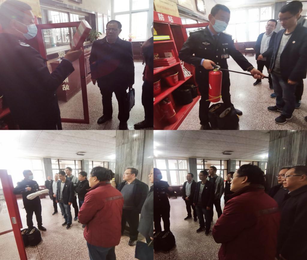 會后,仵杰院長、高國旺副院長、各科研實驗室安全員跟隨張晶教官前往1號教學樓大廳對微型消防站里擺放的日常消防器材具體用途、正確使用方法步驟進行了詳細講解和現場操作。
