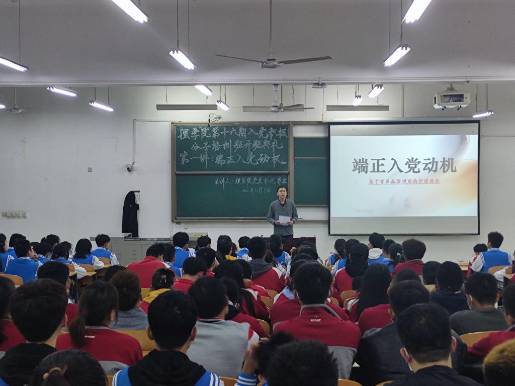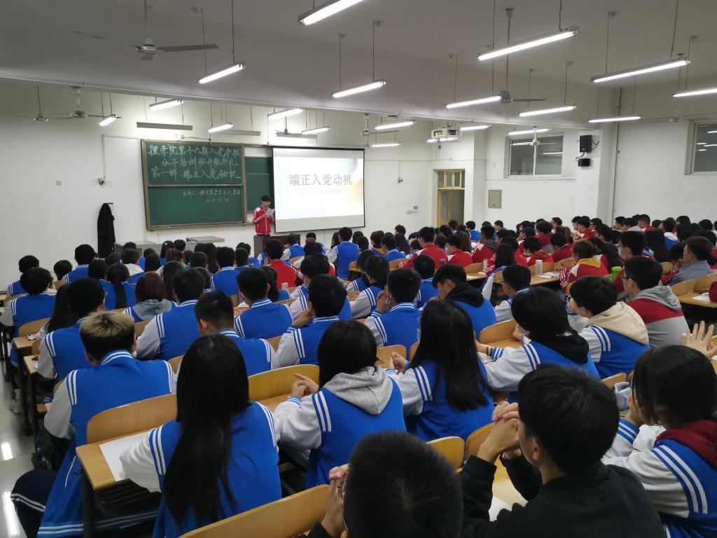 11月3日,理學院第十六期入黨積極分子培訓班開班典禮暨第一講——“端正入黨動機”在鄠邑校區教學B區121教室舉行。學院黨委書記廖敏主講,學生管理辦公室主任丁亦喆主持,各年級輔導員及198名學員參加學習。