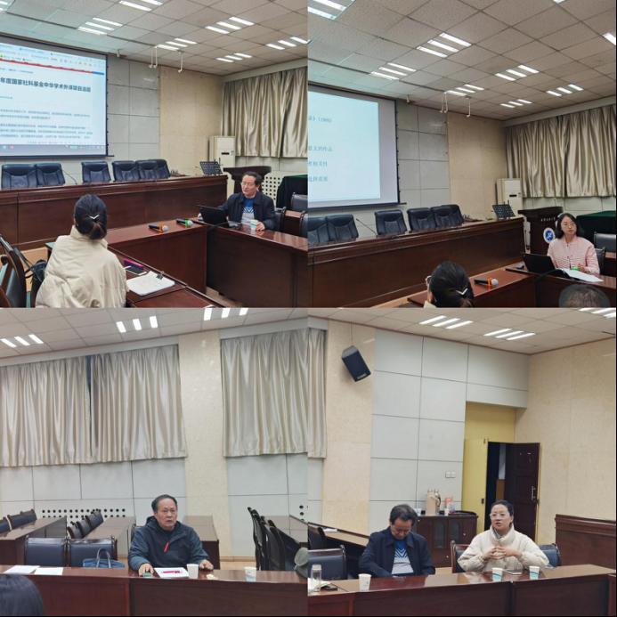 接著,劉副院長對2022年度國家社科基金項目做申報動員及重點部署。她指出,國家社科基金項目申報關乎學院的學科發展與學位點建設,對教師及團隊來說也是一個磨練、學習、積累經驗的過程,對提升科研能力大有裨益,要求大家盡快結合學科高頻關鍵詞及熱點問題,著力在選題上下功夫,明確研究方向,做好前期準備工作,并認真學習申報指南,反復打磨申報書,切實提高申報質量。同時,劉副院長表示,學院將繼續以國家社科申報工作為抓手,全面支持教師開展科研工作,提升科研能力,在項目申報管理中充分發揮指導作用,聘請校內外專家開設相關講座,一對一指導申報書的撰寫和修改,進一步提高申報書質量。
