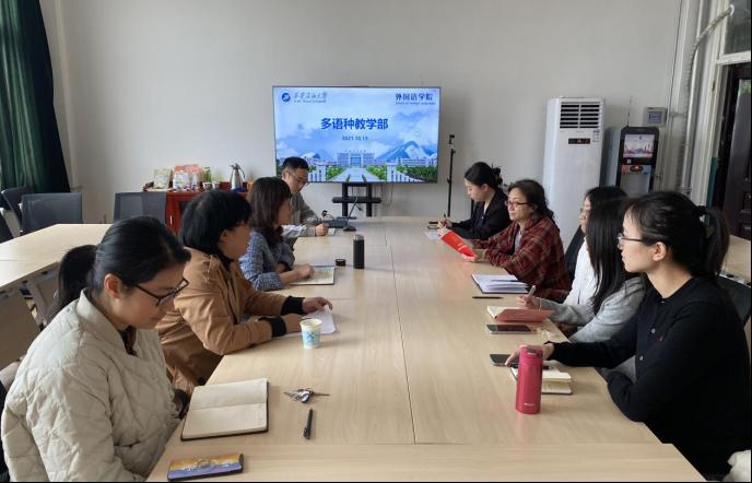 多語種教學部副主任陳旭老師介紹了多語種教學部的基本情況,要求各位教師積極擴寬視野,將課程思政知識融入語言課程,積極開設相關的通識教育選修課,為教學和科研打好基礎;要踴躍嘗試,跳出舒適圈,扎實開展科研工作,踴躍參加競賽。他表示,多語種教學部將積極研究形成有效的考核及鼓勵機制,充分調動每位教師的積極性和創造力。與會教師就多語種教師教學、科研、競賽以及未來個人發展方向、學院建設等多方面的內容展開了激烈的討論,提出了自己的意見和建議。