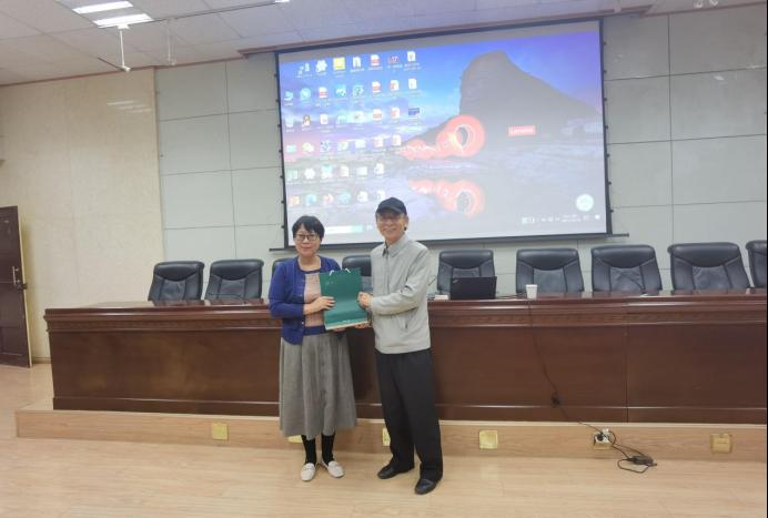 講座結束后,于艷英院長對王教授的精彩講座表示衷心的感謝,并代表學院向王教授贈送了西安石油大學的特色紀念品——一滴油。