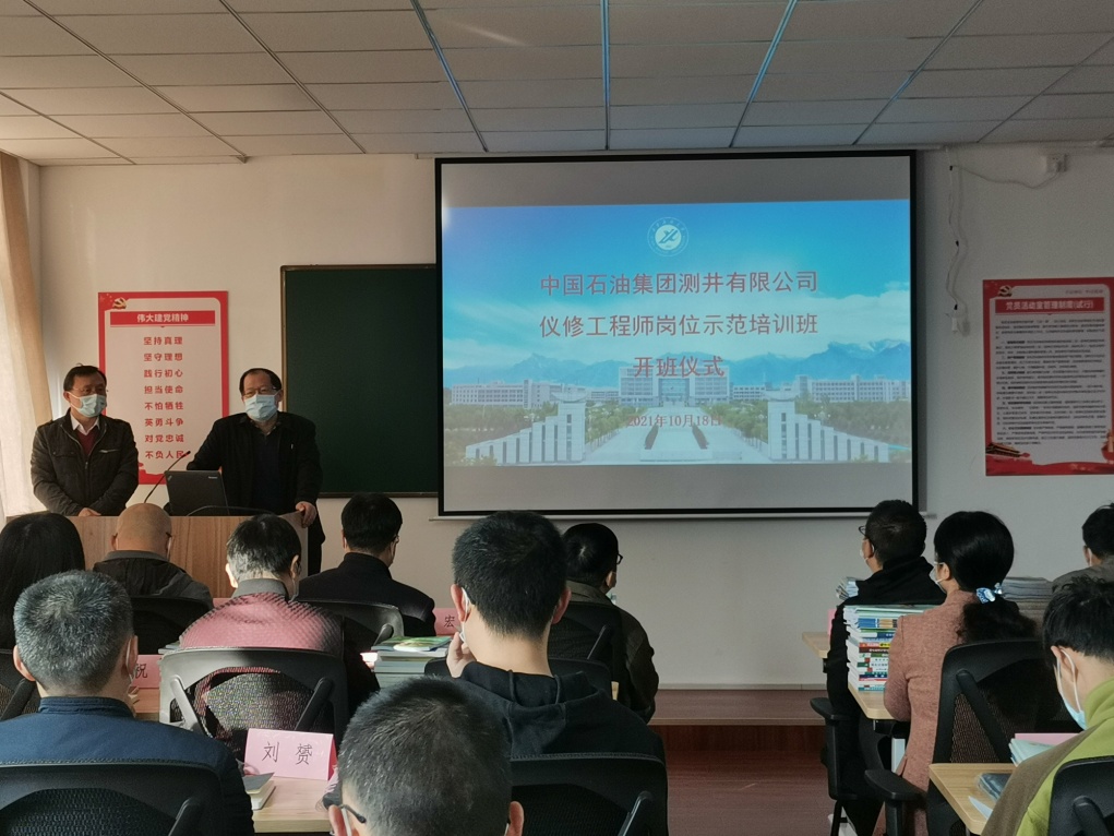 10月18日上午,儀修工程師崗位示范培訓班在我校雁塔校區第一教學樓905室舉行開班儀式,本次培訓由電子工程學院承辦,參加培訓學員是來自中國石油集團測井有限公司各分公司的儀修高級工程師,共29名。仵杰院長出席開班儀式,參加開班儀式的還有劉升虎、曲小群、趙驕楊等幾位教師。開班儀式由高國旺副院長主持。