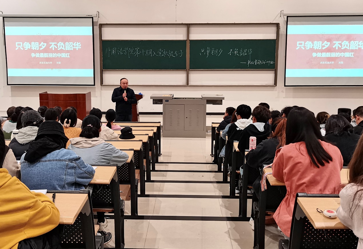 10月12日晚,外國語學院在鄠邑校區石工地科樓115教室舉行第10期入黨積極分子培訓班第三次集中授課,校黨委學生工作部副部長劉笛應邀擔任主講。共計200余名入黨積極分子學員參加培訓。