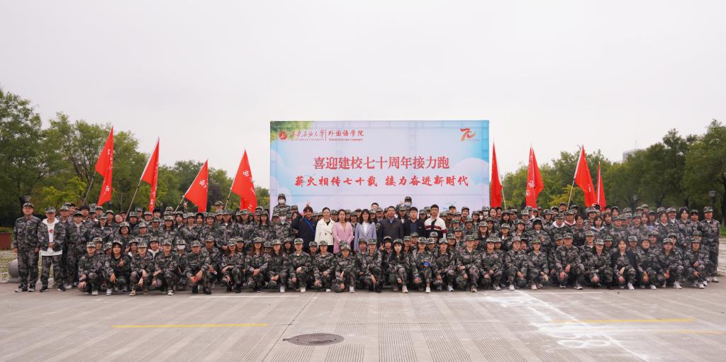 10月12日校慶日,由外國語學院主辦、外國語學院團委和學生會承辦的 “薪火相傳七十載,接力奮進新時代”喜迎建校70周年接力跑活動在鄠邑校區開跑。學院黨委書記田虹霞、學生工作辦公室全體成員和2021級全體本科生參加活動?;顒佑蓪W院黨委副書記王業青主持。