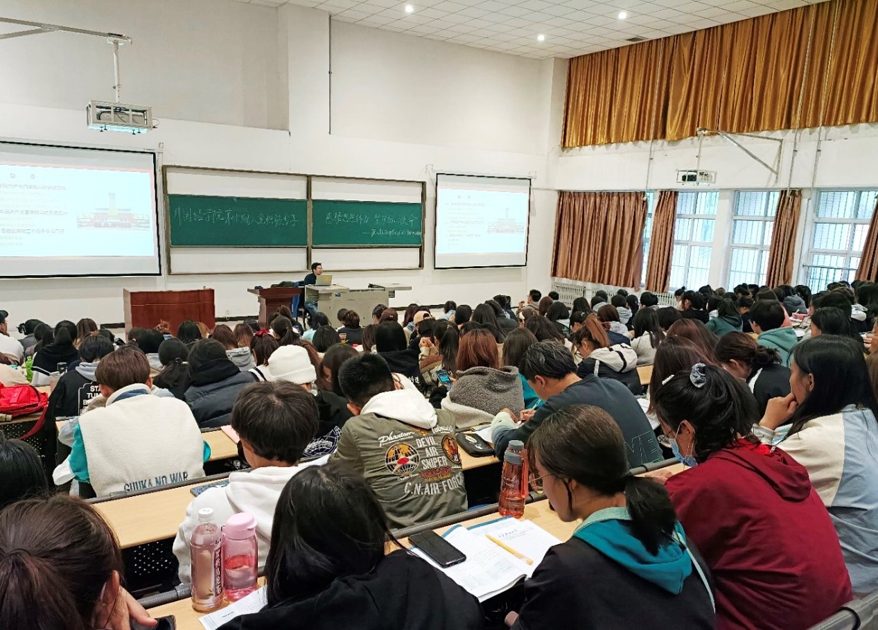 王老師圍繞習近平總書記“七一”重要講話精神,從中國共產黨百年奮斗的光輝歷程、歷史啟示和昂首邁向第二個百年奮斗目標三個方面進行講授。詳細講解了建黨百年來創造的“四個偉大成就”和向世界做出的“四個莊嚴宣告”,著重講解了“偉大建黨精神”的豐富內涵。他指出,中國共產黨的誕生是近代以來歷史的必然選擇,是中國人民和中國國情的必然選擇,也是中華民族的必然選擇。隨后,王老師通過中國共產黨百年奮斗歷史的九個重要啟示,向同學們闡釋了精神建設的重要意義和我們黨的先進性和優良傳統。最后,王老師結合自己的親身經歷及訪學見聞,號召同學們:要堅定理想信念,踐行黨的宗旨,以實現中華民族偉大復興為己任,不斷增強、志氣、骨氣、底氣,為黨和國家的發展做出自己的貢獻。