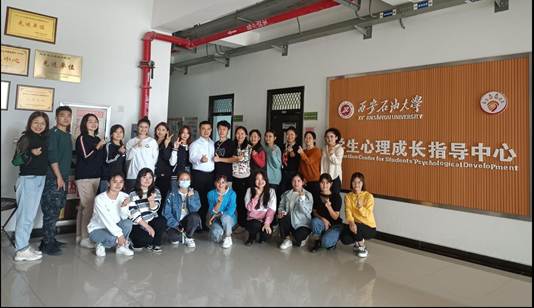 本次活動由互動交流、情緒宣泄、音樂放松、沙盤游戲、腦波治療體驗五部分組成。在心理成長指導中心老師的帶領下,同學們依次參觀了體驗導室、心理咨詢室、宣泄室、音樂放松室、心理沙盤室等,肖瓊教授在參觀過程中依次向同學們介紹各個功能室的定位、效能和適用性,并宣傳了“油緣心理”的理念-“如石油之動力,惜相遇之機緣,助心理共成長”。為讓同學們對心理咨詢的流程和學生心理成長指導中心的工作有進一步的了解并加深感受,同學們分別親身體驗了宣泄室、音樂放松室、心理沙盤室等。