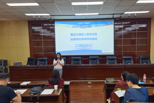 學院黨委書記田虹霞做了題為《落實立德樹人根本任務加強高校師德師風建設》專題宣講。田書記從“新時代習近平有關高校師德師風建設的論述 、高校師德師風建設的基本政策、高校師德師風建設的基本路徑三方面做了詳細論述。她提出,全體教師要按照“四個相統一”的要求,恪守高校教師職業道德規范和職業行為準則,忠誠黨的教育事業,落實立德樹人根本任務,努力成為有理想信念、有道德情操、有扎實學識、有仁愛之心的四有好老師,要堅持向“標準看齊”、向“榜樣看齊”、做“大學問”、懷“大愛心”,爭做新時代“大先生”。