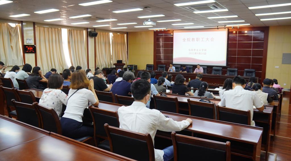 9月10日下午,為慶祝第37個教師節,馬克思主義學院在雁塔校區會議中心第五會議室召開全院教職工大會,開展“賡續百年初心 擔當育人使命”主題師德師風建設暨教師宣誓承諾活動。學院黨總支書記張偉主持會議,學院領導班子及全體教職工共50余人參加。