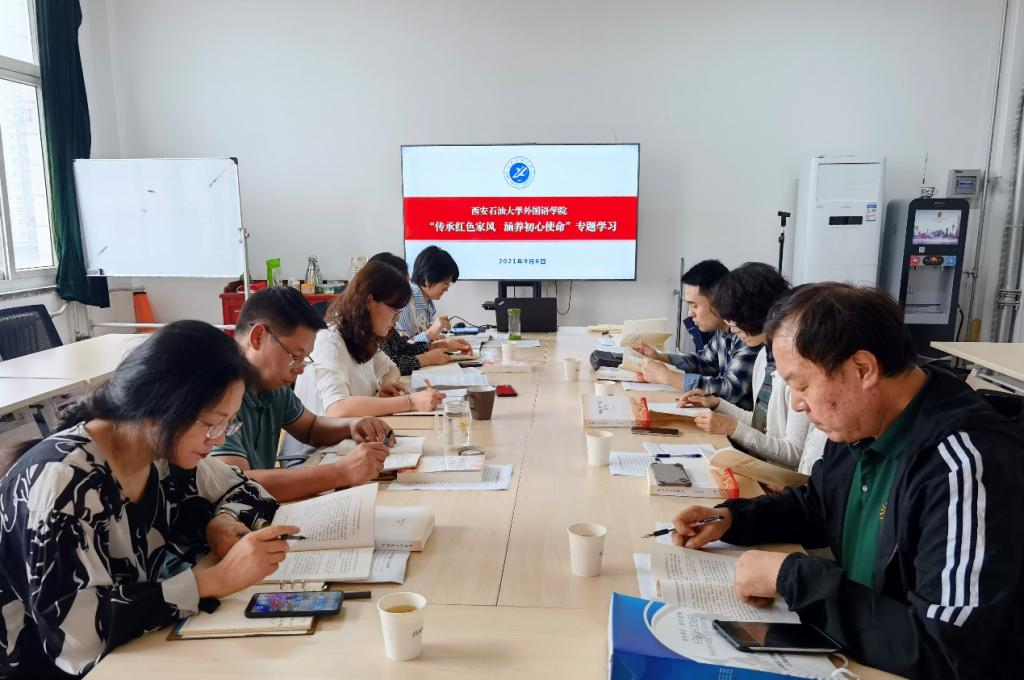 9月6日下午,外國語學院黨委理論學習中心組在雁塔校區1號教學樓727會議室召開“傳承紅色家風,涵養初心使命”專題學習會。學院黨政領導班子、理論中心組成員、教工黨支部書記參加了會議,會議由學院黨委書記田虹霞主持。