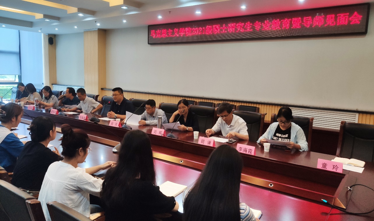 9月1日下午,馬克思主義學院2021級研究生專業教育暨導師見面會在鄠邑校區圖書館第二會議室順利舉行。會議由張海濤院長主持,學院黨總支書記張偉、副院長董春詩、劉輝教授、郭艷英副教授等10位老師參加了會議。