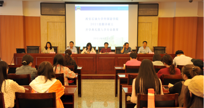 9月1日下午,外國語學院2021級翻譯碩士研究生開學典禮暨入學專業教育在鄠邑校區圖書館第一會議室舉行。學院黨政領導班子、教授委員會主任、翻譯碩士研究生導師和2021級47名翻譯碩士研究生參加開學典禮。開學典禮由劉輝副院長主持。
