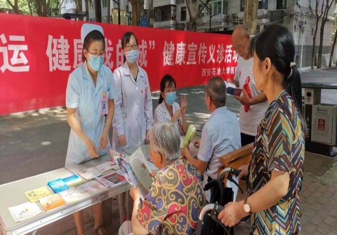 一是開展校園健康宣傳義診活動。在第十四屆全運會即將召開之際,為了助力十四運精彩、圓滿舉辦,營造支持全運、參與全運、服務全運的濃厚氛圍,并推動學校醫療資源下沉,方便群眾在家門口看病就醫,7月24日,校醫院在雁塔校區開展了校園健康宣傳義診活動。活動當天,參加義診的醫護工作人員不懼酷熱,對前來義診的師生或家屬進行熱心問診,并根據他們的健康狀況一一地提出一些專業的治療建議和健康指導?;顒蝇F場,工作人員還免費為大家檢測血壓、血糖等,發放醫療宣傳手冊,積極普及新冠疫苗接種等醫療知識和健康生活理念。本次義診活動得到了廣大師生、家屬的熱烈歡迎和廣泛好評。