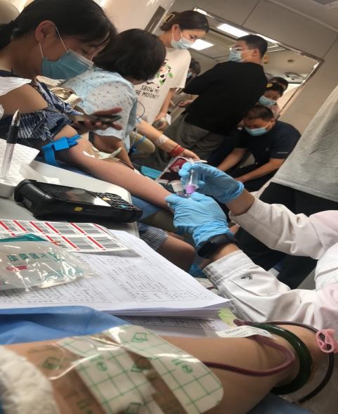 三是弘揚“敬佑生命、救死扶傷、甘于奉獻、大愛無疆”的奉獻精神,組織開展服務十四運衛生健康系統無償獻血活動。7月23日下午,在校醫院黨支部書記劉勝勇的帶領下,校醫院黨員干部群眾等一行12人來到小寨飛炫廣場的流動獻血車進行了無償獻血活動。本次參加自愿獻血的均為校醫院的醫務工作者,他們積極響應政府號召,以身作則,率先垂范,用實際行動支持全運、服務全運,關注并參與著國家的無償獻血事業。獻血活動完成后,他們當中有人自豪地說:“能用自己的熱血幫助那些急需幫助的人,讓他們重獲健康,是醫務工作者的榮幸,更是醫務工作者義不容辭的責任?!?/p>