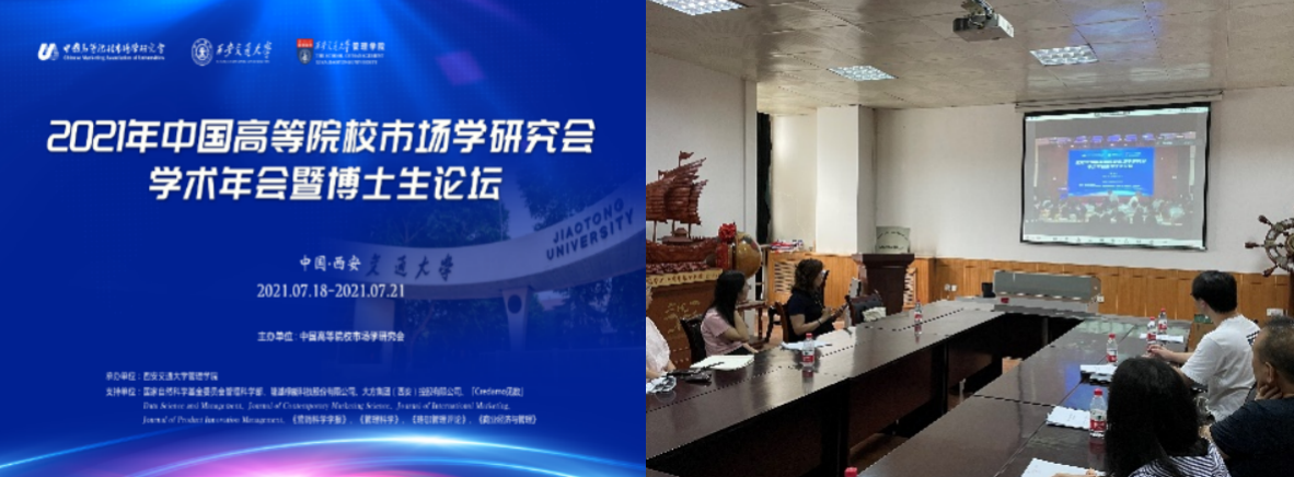 7月20日—21日,經濟管理學院院長王君萍和企業管理系教師代表在雁塔校區第二教學樓1507在線參加中國高等院校市場學研究會(Chinese Marketing Association of Universities,CMAU)主辦的學術年會。此次年會的會議主題為“高質量發展與營銷創新”,旨在交流探討高質量發展與營銷創新研究的新形勢與新趨勢,分享高質量發展與營銷創新的現實挑戰和解決相關營銷實踐問題。