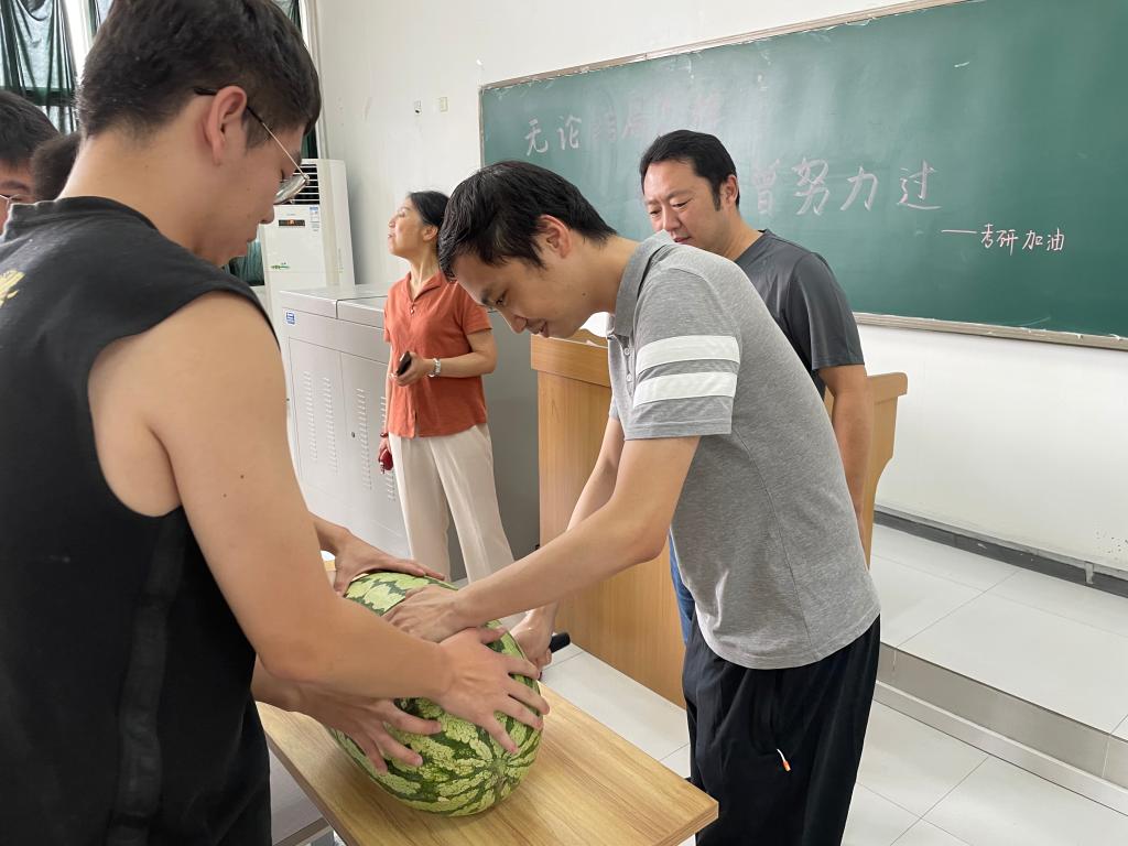 在雁塔校區,廖書記一行看望慰問了暑期留校的四十余名研究生同學,為大家帶去西瓜和飲料等慰問品。廖書記鼓勵研究生同學認真學習實踐,在導師的帶領下刻苦鉆研專業知識,勇攀科研高峰。陳國祥副院長向研究生同學強調了實驗室安全等問題,針對防暑降溫、留校安全對研究生做了進一步的要求。