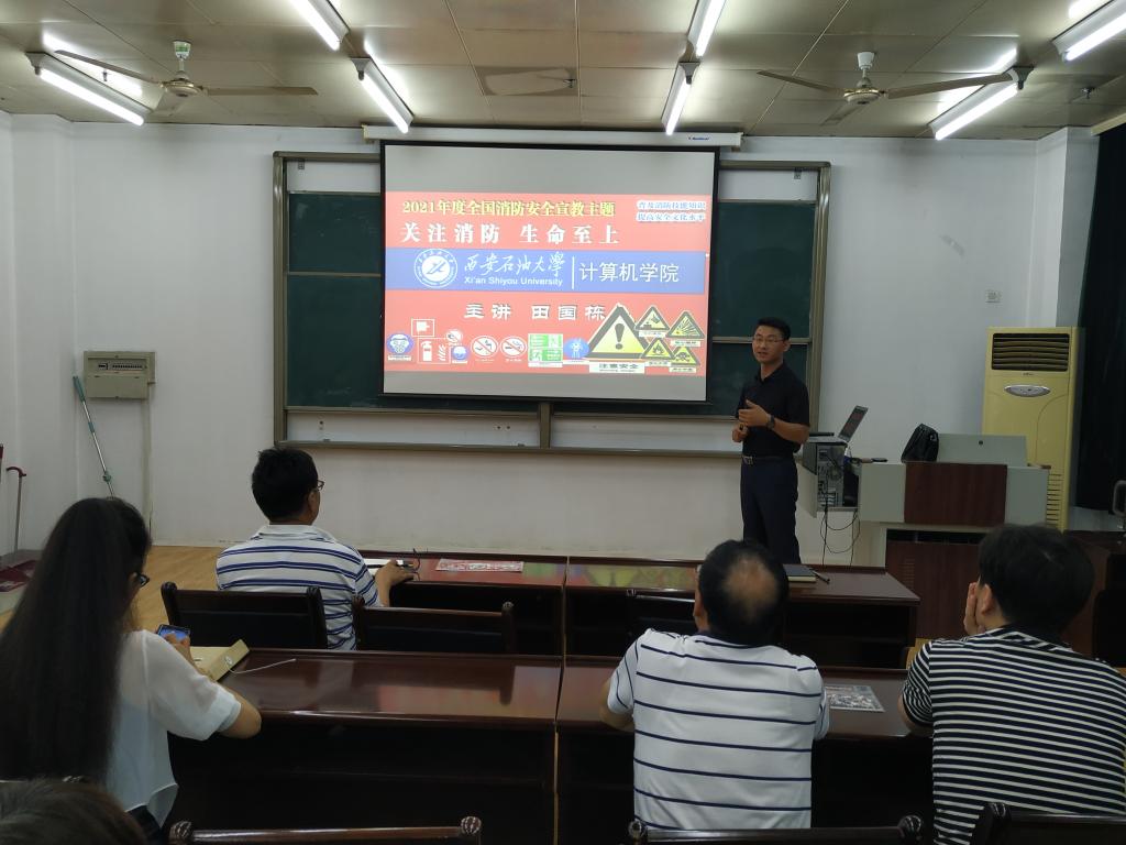 大會第二階段,學院邀請西安市圣安防火技術中心特聘講師田國棟,為學院全體教職工進行了消防安全主題講座。田老師從真實火災案例出發,為大家生動的普及了消防器材使用、險情中自救與施救、實驗室(家庭)突發險情應對等消防安全常識,增強了全院教職工防火防災意識。