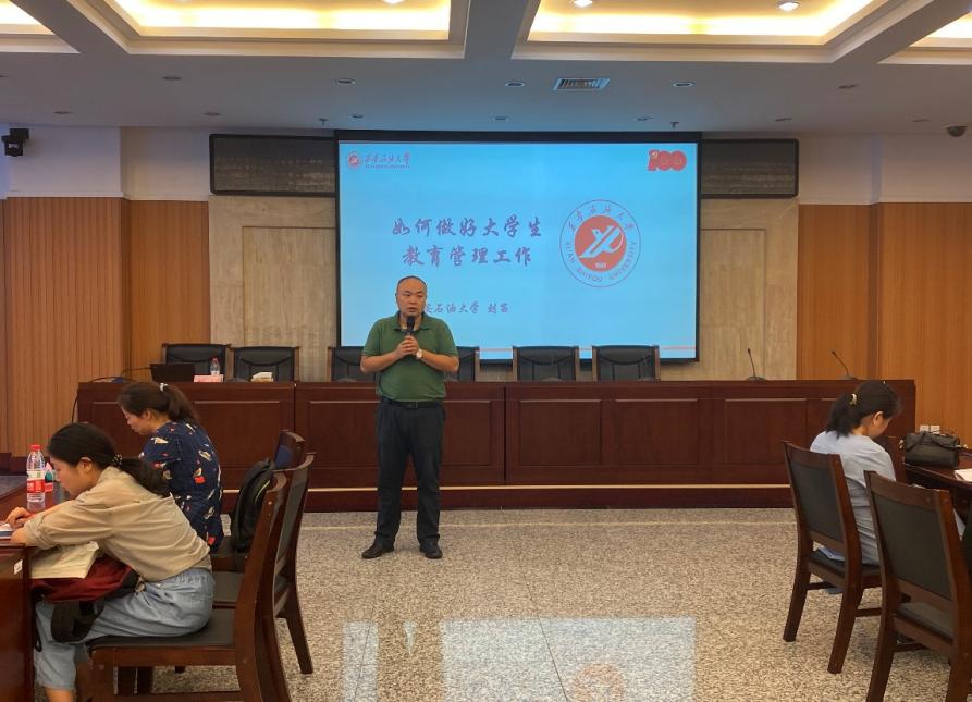 龐秉謙副部長在為期1天的培訓交流中,鼓勵輔導員老師們要認真學習《中共中央、國務院關于加強和改進新形勢下高校思想政治工作的意見》《普通高等學校輔導員隊伍建設規定》《高等學校輔導員職業能力標準(暫行)》《關于加快構建高校思想政治工作體系的意見》等重要文件和相關政策的內容,把握其精神實質,在實踐中扎實落實工作要求。要認真學習《西安石油大學學生管理規定》《西安石油大學全日制本科生學籍管理規定》《西安石油大學重點關注學生穩定安全防控管理辦法(試行)》等內容,掌握學校在大學生思想政治教育管理服務等方面的制度文件和管理規定。重點解讀了《中共西安石油大學委員會關于進一步加強我校本科生班級建設的實施意見》,對下一步做好班級建設等重點工作對參訓輔導員進行了深入和廣泛的動員。他從我校輔導員隊伍建設現狀分析出發,提出了今后工作的思路,并在輔導員專業化團隊的組建、建設目標、建設任務、成果產出等方面提出了具體設想,鼓勵各位輔導員老師注重自身職業規劃,多措并舉推動自身的專業化和職業化發展。