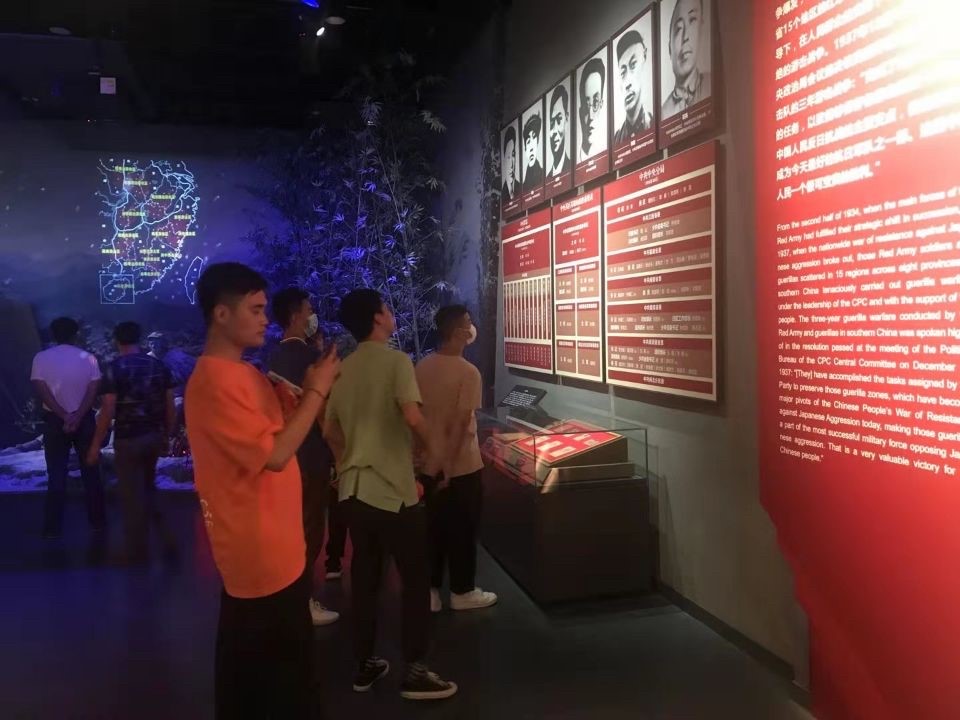 在講解員的帶領下,同學們徐徐地步入紀念館內,參觀學習了新四軍的發展史主題陳列,展館內一件件珍貴的革命歷史文物,一張張革命英烈的照片,將大家引入到了那段艱苦奮斗、頑強拼搏的抗日戰爭歲月中去。館內的許多壁畫,形象直觀地向大家展示了戰爭的激烈場景。戰爭是殘酷的、無情的,它侵害的是一個個無辜的老百姓的生命,使人民生活在水深火熱之中。為了人民的幸福生活,一代代共產黨人、一輩輩革命先烈拋頭顱、灑熱血,前赴后繼,無怨無悔。面對大無畏的英雄史詩,同學們紛紛表示:我們一定要銘記歷史,珍惜今天來之不易的美好生活,反對戰爭,維護和平。江山就是人民,人民就是江山,共產黨打江山、守江山,守的就是人民的心。立足百年征程,我們要認認真真開展黨史學習,不忘黨的初心和使命,做到學史明理、學史增信、學史崇德、學史力行,學黨史、悟思想、辦實事、開新局,不斷增強“四個意識”,堅定“四個自信”,做到“兩個維護”,聽黨話,感黨恩,跟黨走。