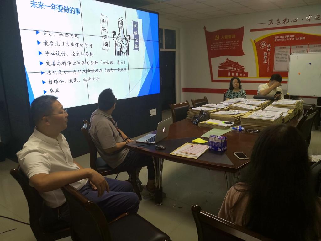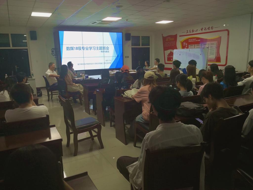 為幫助學生進一步認清考研與就業形勢,為即將到來的四年級學習和生活做好準備,7月2日,在鄠邑校區C1樓112會議室,計算機學院教工第五黨支部組織部分教師黨員召開了“考研與就業”主題班會。學院黨委委員、數字媒體系主任楊文陽、教師黨員代表吉喆、何志州、趙越、李湘眷、崔惠萍和2018級數字媒體技術專業全體學生參加了本次班會。
