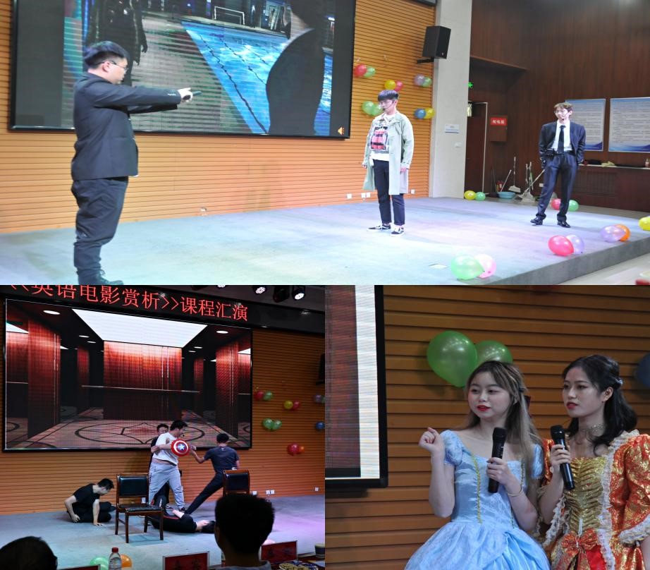本次匯演活動共有節目18個,分成兩部分。第一部分由主講教師張磊介紹外國語學院本學期大學英語教學改革分方向《英語電影賞析》的課程情況;緊接著由三名同學進行課程匯報,進行學習成果分享。接下來是匯演的第二部分,節目異彩紛呈,包括英語話劇、經典英語電影配音、歌曲演唱、英文詩歌朗誦及英語舞臺劇等,匯演現場高潮不斷迭起,整個會場掌聲不斷。