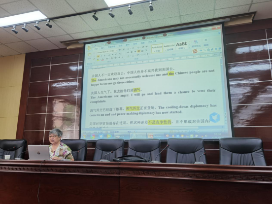 徐亞男老師通過大量真實鮮活的外事翻譯案例,向大家講解了外事翻譯區別于文學翻譯、旅游翻譯等其他領域翻譯的突出特點,如政策性強、敏感度高、知識面寬、中國特色的理念及語言、文學素養、中文的表達習慣等,并闡釋了從事外事翻譯所需的基本素質及注意事項。
