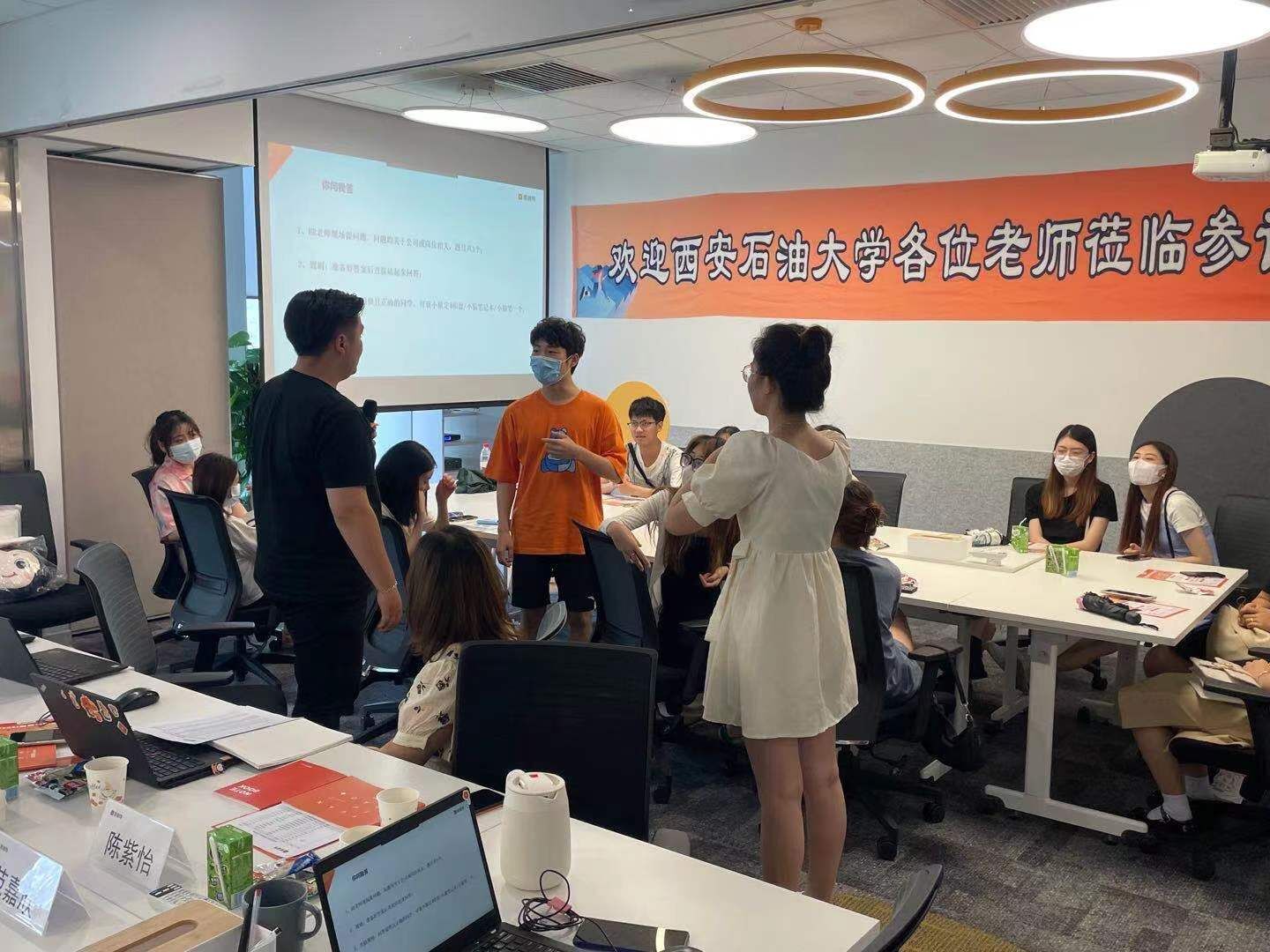 為了提升學生的求職積極性,增加學生對就業市場的了解,6月28日下午,人文學院黨委副書記盛丹和2018級輔導員范嘉欣老師帶領2018級四十余位來自中文、視覺傳達設計、環境設計專業的學生到西安猿輔導公司進行參觀學習。