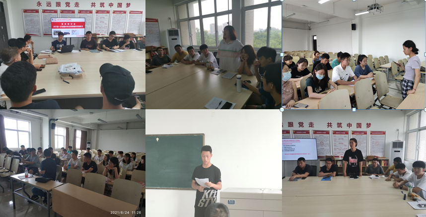 學生第五黨支部書記趙飛老師指出:作為共產黨員,要把握“學史明理、學史增信、學史崇德、學史力行”的目標要求,切實做到學黨史、悟思想、強信念、促學風,強化思想武裝,提高政治站位,積極參加支部組織的各項活動;要在思想建設、學風建設、文體活動、學科競賽、社會實踐等方面積極帶動其他同學共同進步。