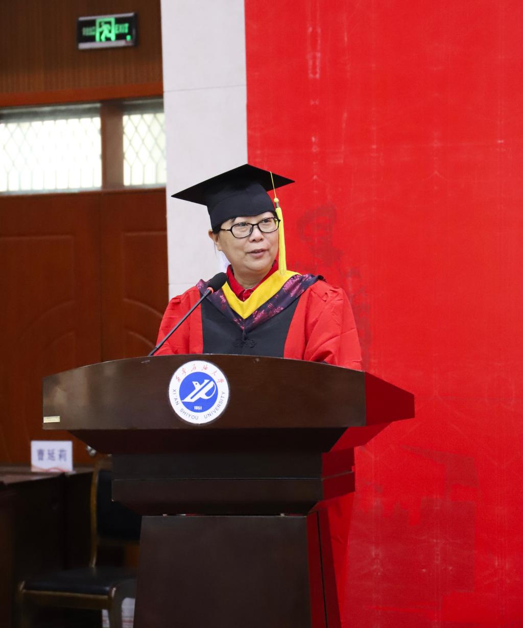 教授委員會委員、副院長劉輝教授宣讀了《西安石油大學西安石油大學關于授予王寶順等4040名學生學士學位的決定》。