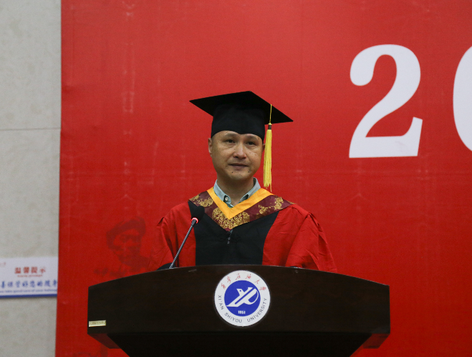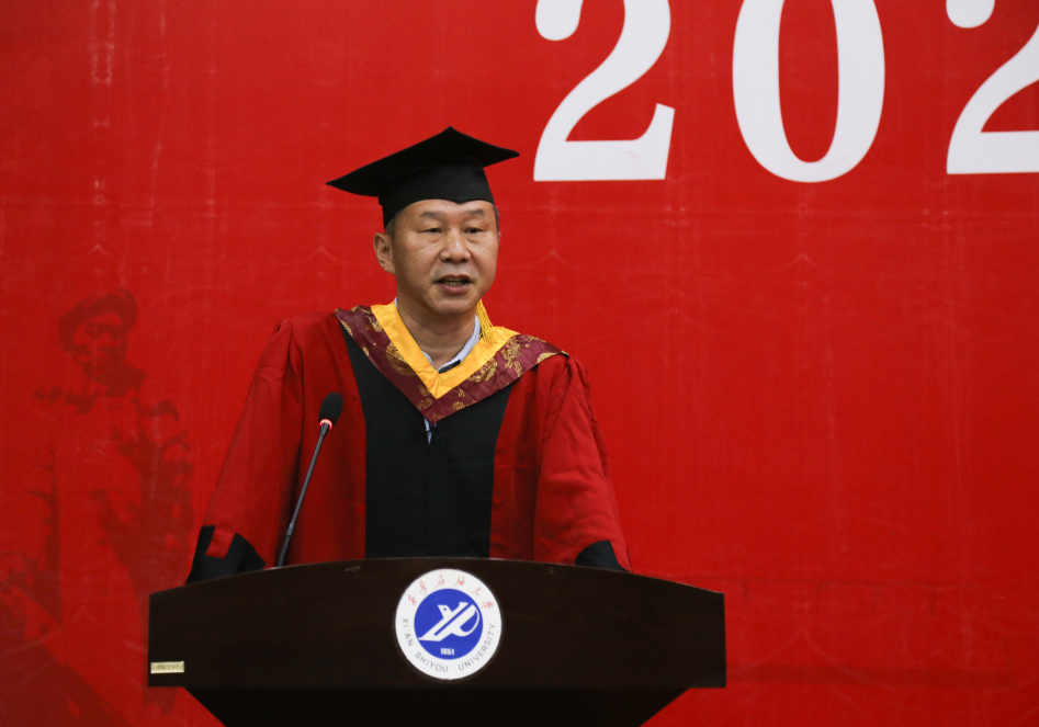 典禮上,首先由史俊教授代表學院學術委員會宣讀了學士學位授予的決定,根據《中華人民共和國學位條例》、《西安石油大學學士學位授予工作實施細則》等,授予陳迦楠等352名同學學士學位。