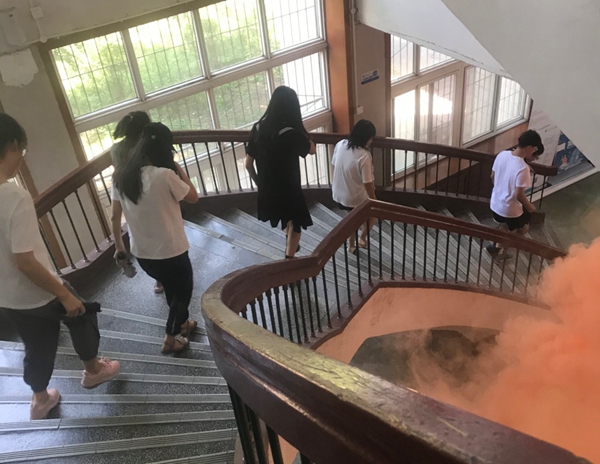 最后,在何教官的指揮下,全體人員參與了火災逃生疏散演練。