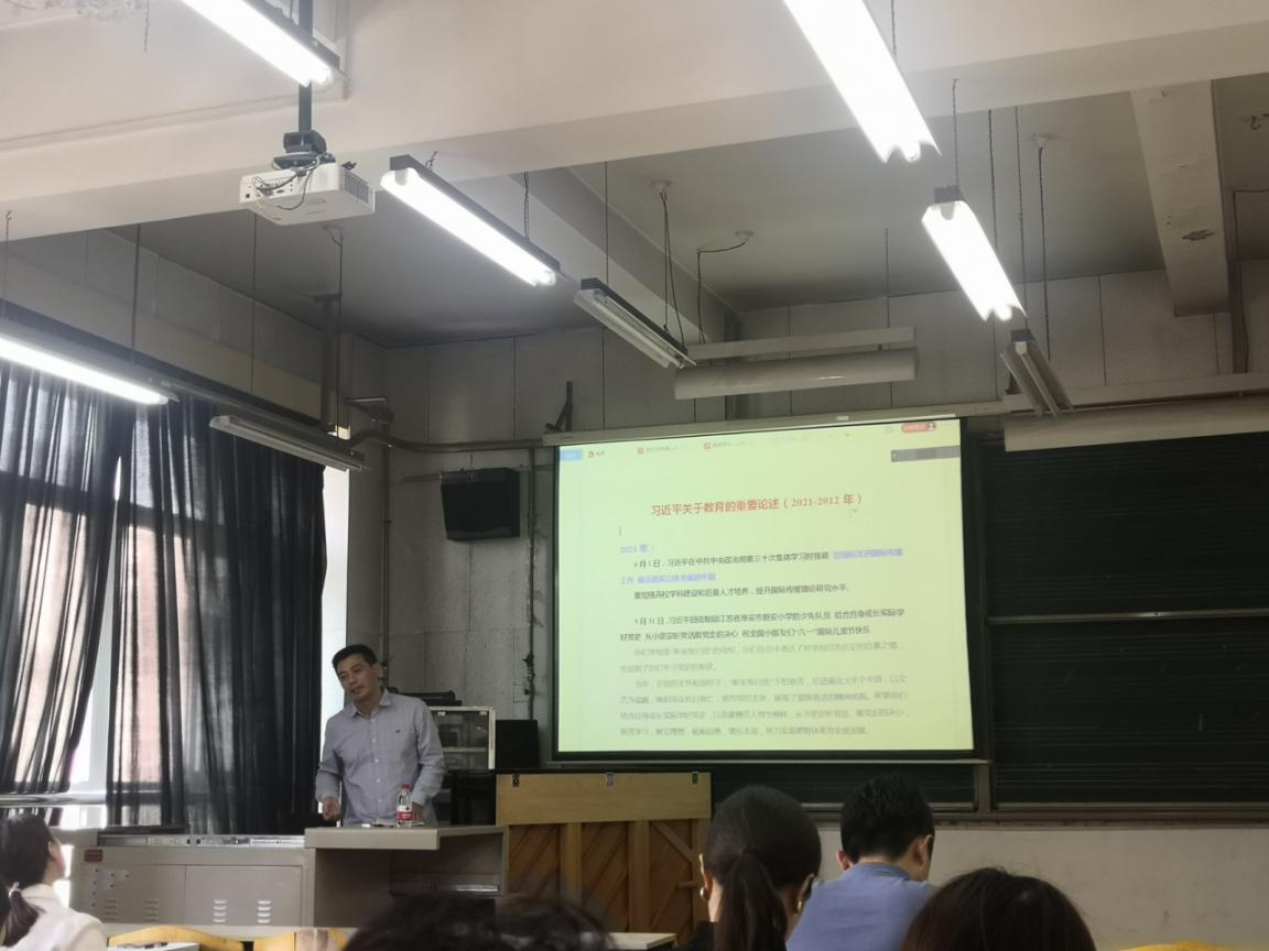 孟開元書記結合音樂系黨史學習教育工作方案和活動安排,為全體教職工和學生黨員作了“習近平關于教育的重要論述”和“構建高質量教育體系”的專題黨課報告。詳細講解了總書記從2012年至2021年關于教育的重要論述,向全體教師系統闡述了全面貫徹黨的教育方針,解決好培養什么人、怎樣培養人、為誰培養人這個根本問題,做“四有好教師”“四個引路人”,落實“四為方針”“四個相統一”“六要要求”“六個下功夫”。全體教師要聚焦立德樹人,要把立德樹人融入思想道德教育、文化知識教育、社會實踐教育各環節,筑牢思想政治工作陣地,加強意識形態工作,健全全員育人、全過程育人、全方位育人的體制機制,培養社會主義建設者和接班人。