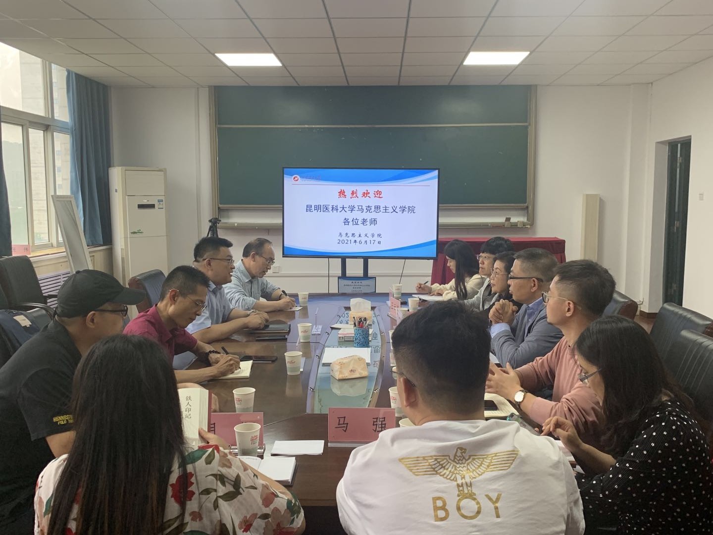 6月17日下午,昆明醫科大學馬克思主義學院副院長劉翠英一行8人來我院交流座談。座談交流會由張海濤院長主持,副院長董春詩及各教研室主任參加了座談。
