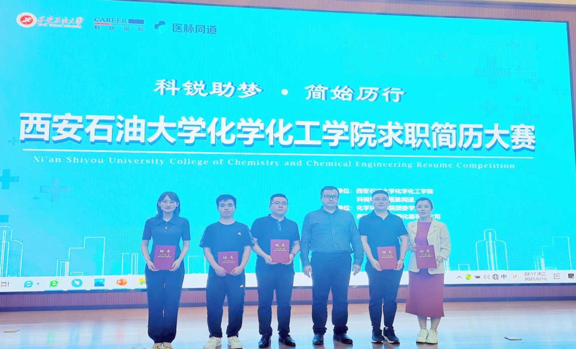 為在校園內營造良好的就業氛圍,幫助同學們凝練核心競爭力,強化求職技能,在即將到來的求職季收獲理想offer。6月16日下午,由化學化工學院學院聯合科銳國際醫脈同道主辦的“科銳助夢·簡始歷行”求職簡歷大賽決賽在我校鄠邑校區弘石報告廳舉行。西安石油大學黨委學生工作部副部長、就業指導中心副主任、創新創業中心副主任樊曉旭,西安石油大學化學化工學院黨委副書記祁帆,科銳國際醫脈同道校園負責人范凱賢,科銳國際醫脈同道金牌講師賀潔,科銳國際醫脈同道校園商務總監賀洛,大學生職業生涯規劃導師張瑞,西安唐翰科技孵化器有限公司副總經理程廣忠出席本次大賽并擔任評委。我院18、19級共13位參賽選手參加了本次大賽,我院各年級學生作為觀眾全程觀賽。