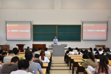 頒獎完畢后,學院黨委副書記張云姿老師進行了考研動員講話。他首先肯定了學院2021屆學生考研取得的成績,對受到表彰的優秀個人表示祝賀。隨后,通過典型事例向2022屆學生講述了目前考研現狀、考研政策和考研的重要性。他希望同學們要時刻銘記“好學力行,自強不息”的校訓,堅定目標,腳踏實地,持之以恒,不懈奮斗,實現人生發展質的飛躍。