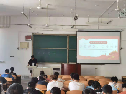 地工專業黨史學習教育宣講會在石工地科樓115教室舉行。我院學生宣講團成員于棟、肖雯婕、高嘉萱、王鑫講述了“紅船精神”、中國共產黨的發展歷程和黨歷史上三次偉大的轉折。