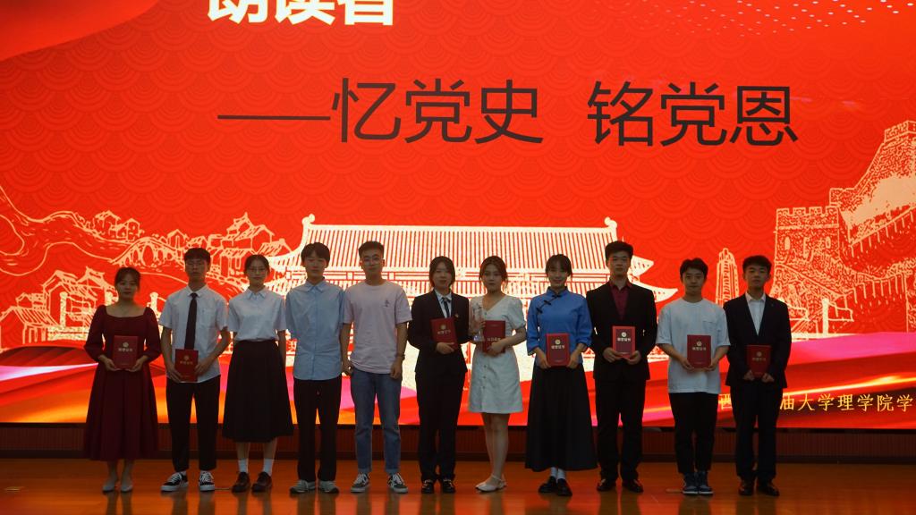 為迎接建黨百年華誕與建校七秩校慶,理學院團委學生會舉辦第一屆“朗讀者——憶黨史 銘黨恩”朗誦比賽。決賽于2021年6月10日19:00—21:00在鄠邑校區弘石學術報告廳成功舉行。理學院丁亦喆老師、龐波老師、林曄老師及學生代表甘友斌、任學凱、張鵬、周星友、張晶、閆藝擔任評委。學校各院系學生會主席受邀觀賽。理學院20級全體本科生與各個院系十三支選手代表團共同參與。