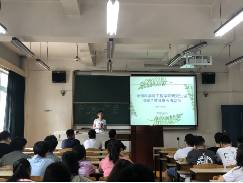 6月8日下午,地球科學與工程學院在雁塔校區2號教學樓1202舉行了2019級全體研究生誠信安全教育暨考博動員大會,會議由我院研究生輔導員張陽主持,我院研2019級全體學生參加。