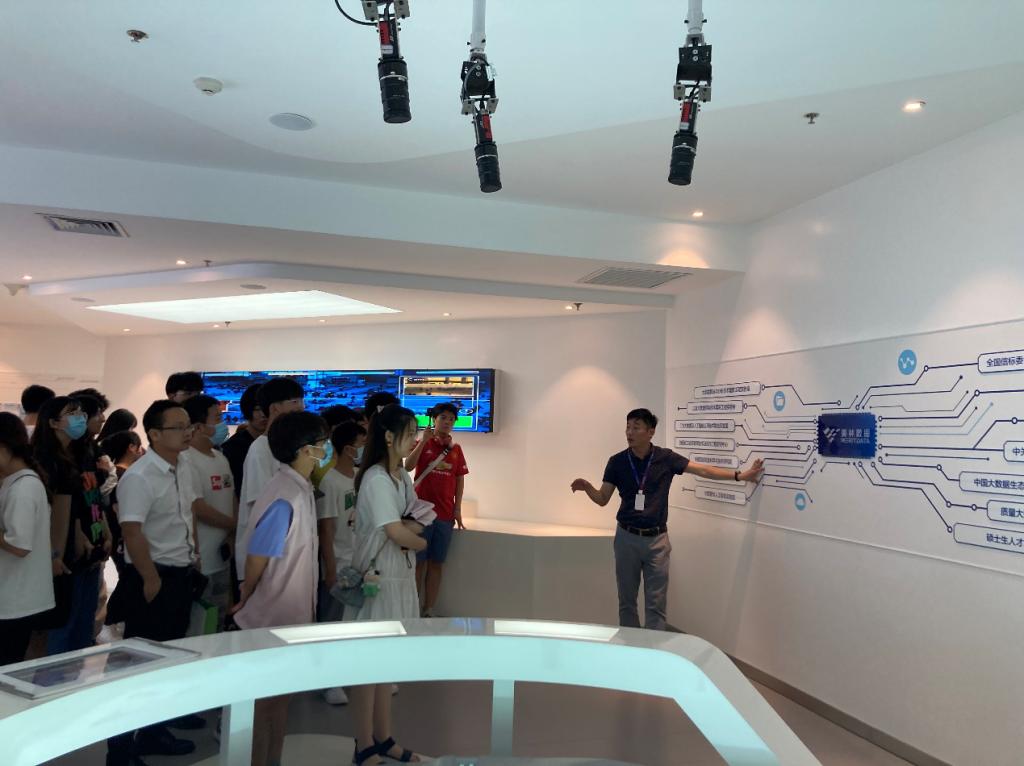隨后,公司區域總監楊東濤帶領大家參觀了美林數據的科技展廳,楊總監引用習近平總書記的話“推進互聯網、大數據、人工智能同實體經濟深度融合,推進制造業產業模式和企業形態根本性轉變,促進我國產業邁向全球價值鏈中高端”,進一步向同學們說明了大數據發展的重要性和必要性,并就“如何通過技術和能力提升自己”與同學們進行了交流探討。