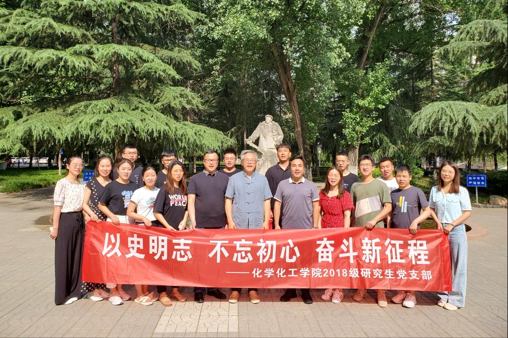 6月8日上午,化學化工學院2018級研究生黨支部在雁塔校區鐵人廣場開展了“以史明志 不忘初心 奮斗新征程”的主題黨日活動,學院黨委書記司馬文龍、副書記祁帆及我院2018級畢業生黨員參加了主題黨日活動,本次活動由學院黨委組織員李超偉老師主持。