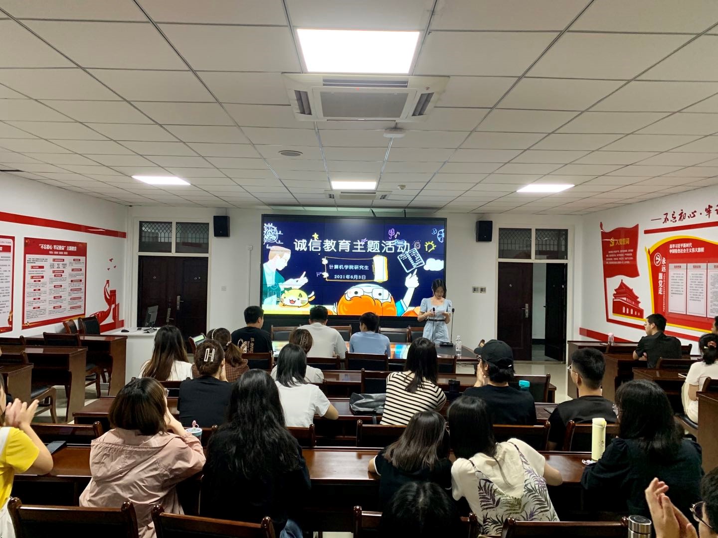 為了進一步加強研究生誠信教育,培養廣大研究生奮發努力、自強不息的精神,踐行社會主義核心價值觀,樹立“誠信待人,誠信處事,誠信學習,誠信立身”的高尚品德,計算機學院于2021年6月3日晚,在鄠邑校區C1樓112舉辦了研究生“學術誠信活動月”活動。研究生輔導員李路,本科生輔導員李晨、王天航,2018級研究生代表孟泰宇、丁恒,2020級研究生參加了本次活動。