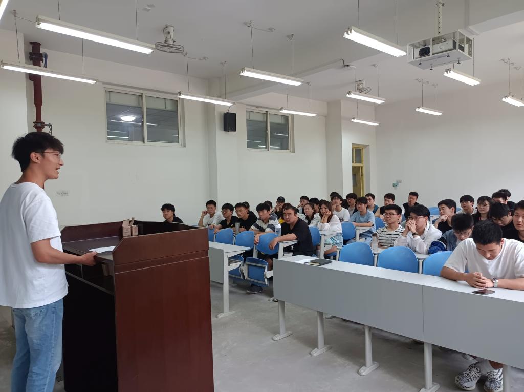 5月27日,勘探專業陳柏臣、朱思融,為資源勘查工程專業2018級學生做考研經驗交流,從考研的意義、心態、作息習慣、資料分享、時間安排等方面進行講解,回答了2018級學生提出的問題。