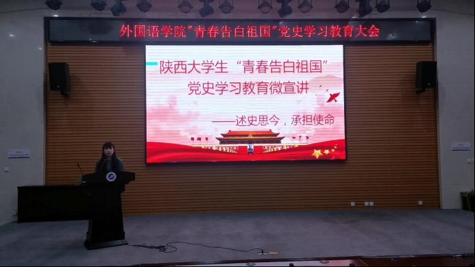 按照學?!蛾P于開展黨史學習教育專題大學生宣講活動的通知》的要求,6月2日晚,外國語學院在鄠邑校區崇文樓118會議室邀請學?!扒啻焊姘鬃鎳秉h史學習教育微宣講團開展了黨史學習。由宣講團成員翻譯1701張凱惠同學主講,學院全體學生黨員、預備黨員、發展對象和積極分子參加了學習。俄語系學生黨支部書記陶李主持學習會。