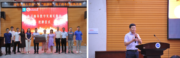 比賽過程中,還舉行了“電子商務教學實訓實驗室”授牌儀式,王君萍院長向電子商務專業負責人趙需要老師授牌。趙需要老師分享了自己舉辦此次競賽的初衷和舉辦過程中的心路歷程,他希望同學們能通過本項賽事實現理論與實踐的完美結合,將知識融會貫通,總結學習成功經驗,學會創新突破,并以喬布斯的名言“Stay hungry, Stay foolish”鼓勵大家在積極學習知識、腳踏實地實踐中前行。
