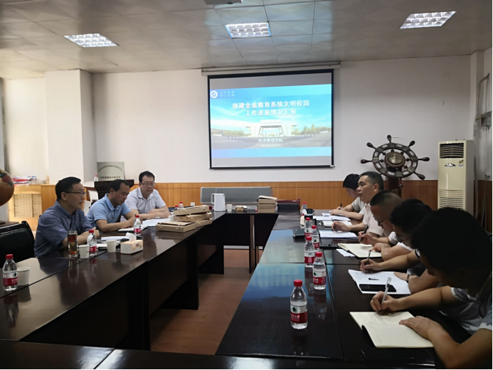 會上,校黨委宣傳部常務副部長趙承勝對學院創建工作提出了意見,并征求了學院關于文明校園創建工作的意見。經濟管理學院黨委書記王宏衛從創建總體原則、精心組織實施、扎實有效推進三個方面匯報了學院文明校園創建工作開展情況。檢查組一行通過聽取匯報、查閱材料、交流研討等形式,全面了解了學院全省教育系統文明校園創建工作的開展情況。