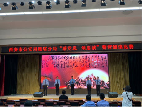5月27日,音樂系組織學生黨支部4名學生赴東儀路派出所開展“音樂進社區”活動,組織并參與西安雁塔分局“感黨恩 頌忠誠”警營誦讀比賽。