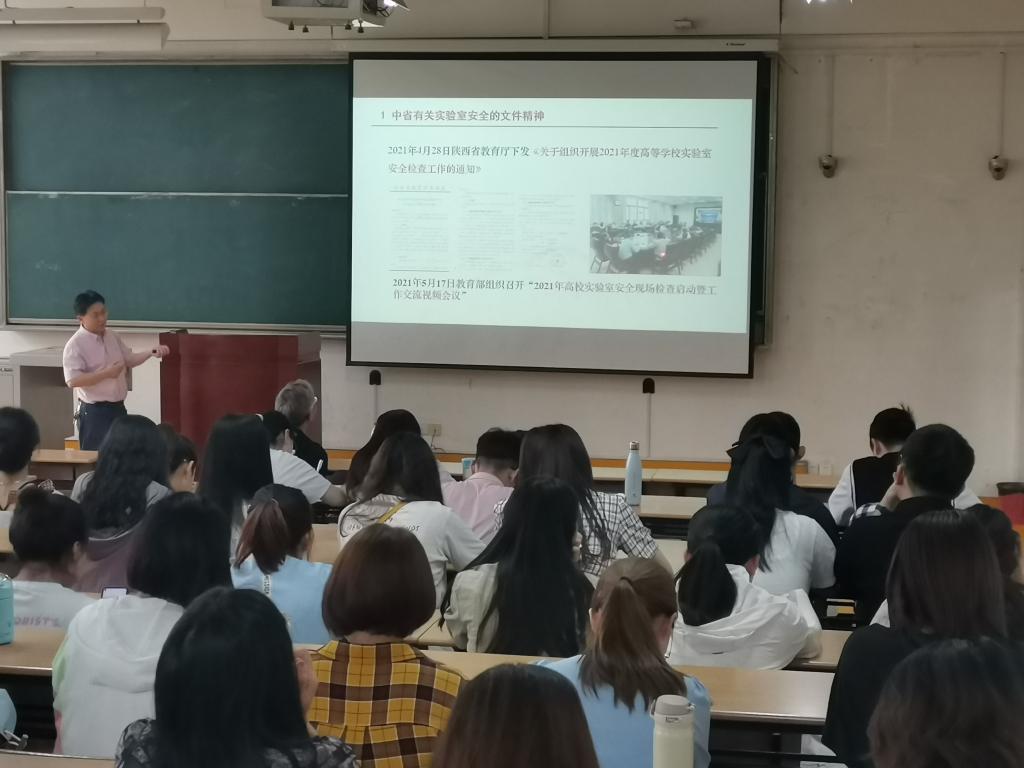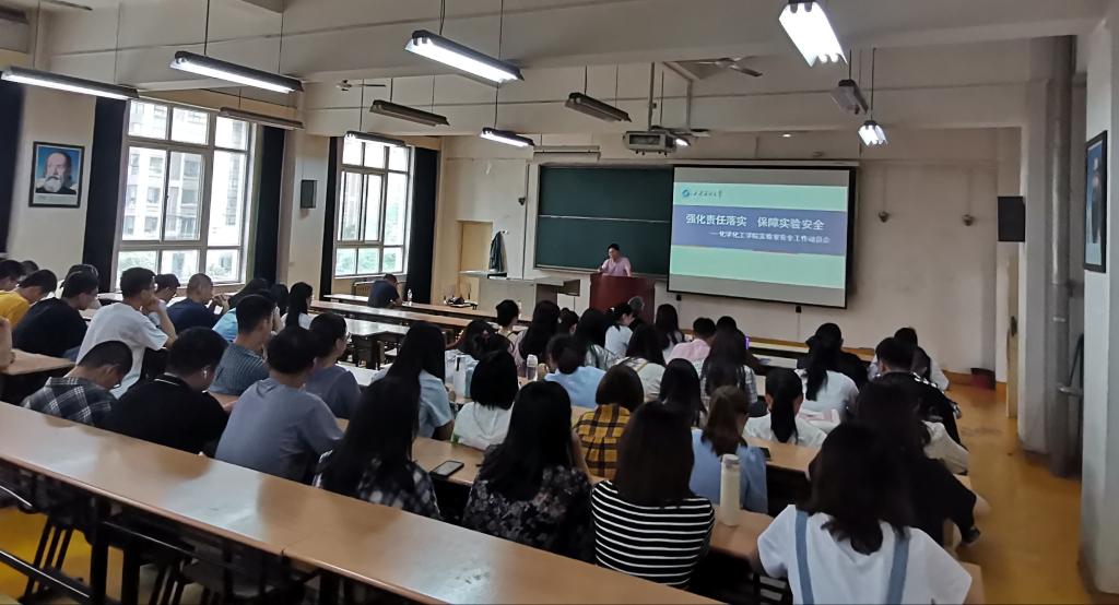 5月25日下午,在雁塔校區東階302教室,化學化工學院組織全體研究生開展實驗室穩定安全教育和學術誠信教育大會,學院黨委書記司馬文龍、副院長李善建和研究生輔導員參加了會議,會議由學院副院長李善建主持。
